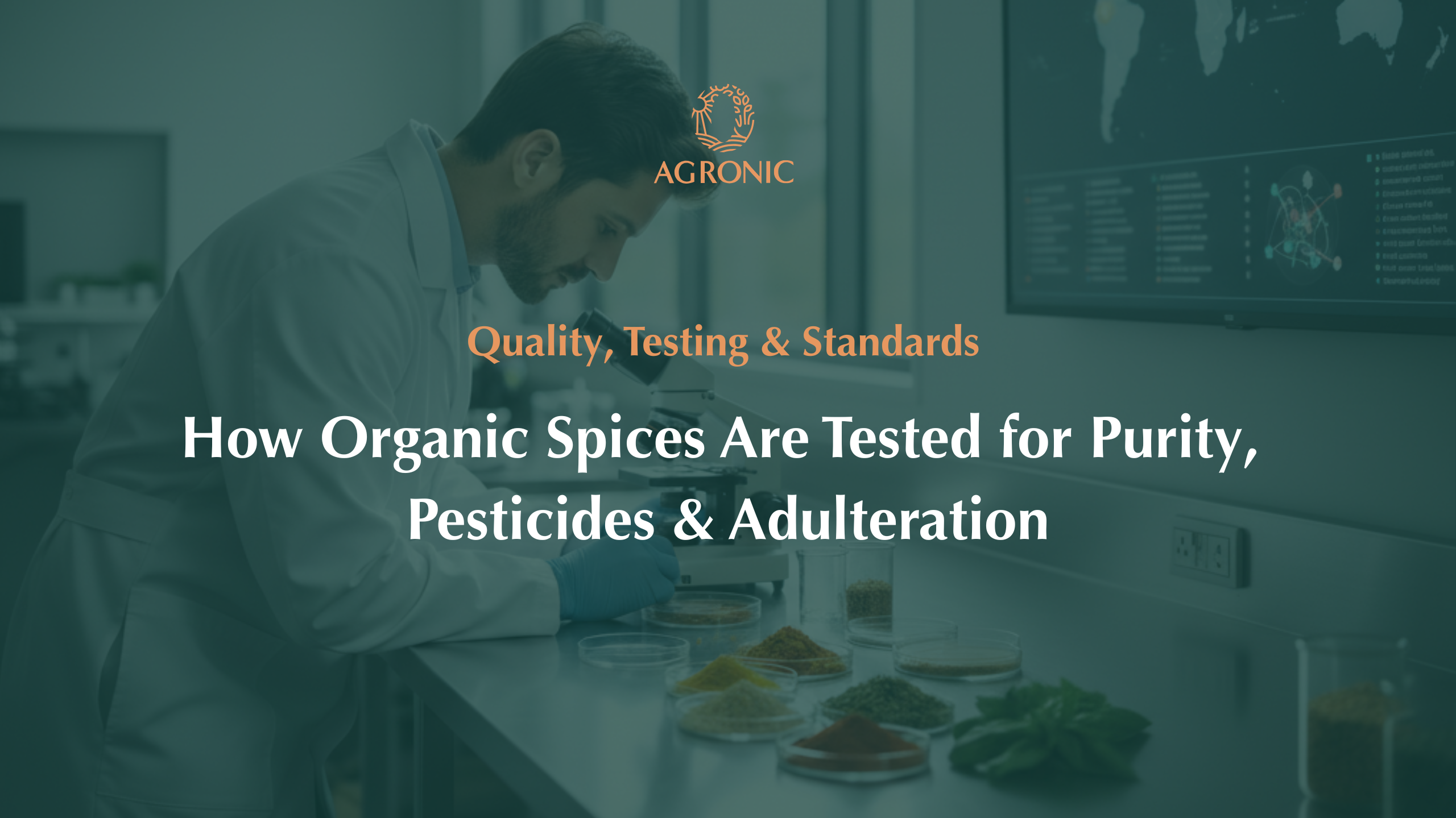 Sourcing certified organic spices and need comprehensive testing coverage across pesticide residues, heavy metals, microbial safety, and purity? Connect with Agronic Food for consistent quality and fully documented organic spice exports.